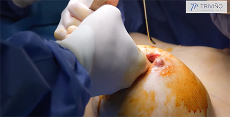 Colocaremos la prótesis totalmente bajo del músculo para evitar que el peso del implante castigue más esos tejidos y luego haremos una liberación glandular para que se favorezca una cicatrización entre glándula y pectoral que permita que la glándula se mantenga posicionada, en una exposición un poquito más alta y más firme.